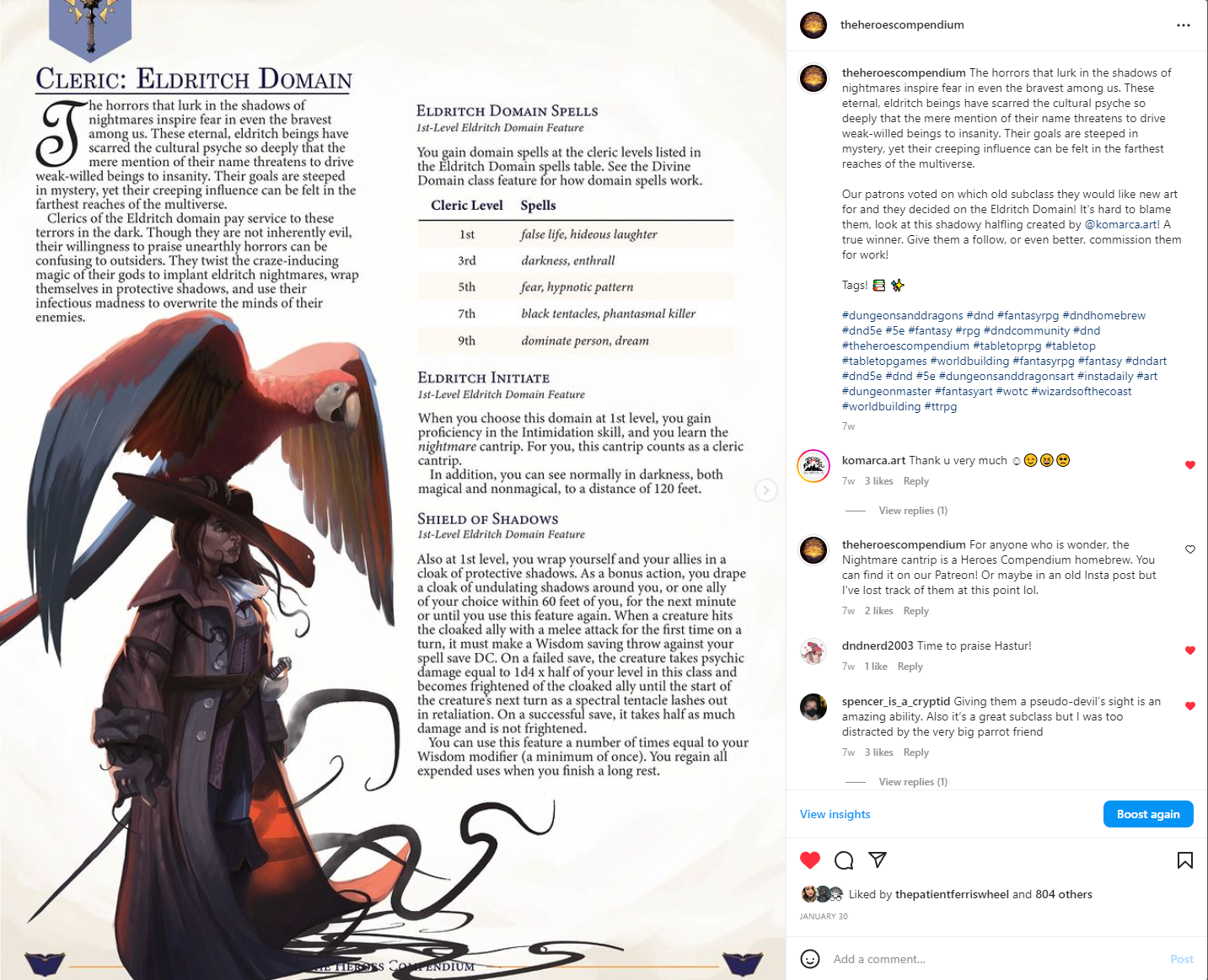 Step 5: We add your art to Heroes Compendium content and post it on Instagram! Sometimes it is not for several weeks, but we always keep you in the loop.