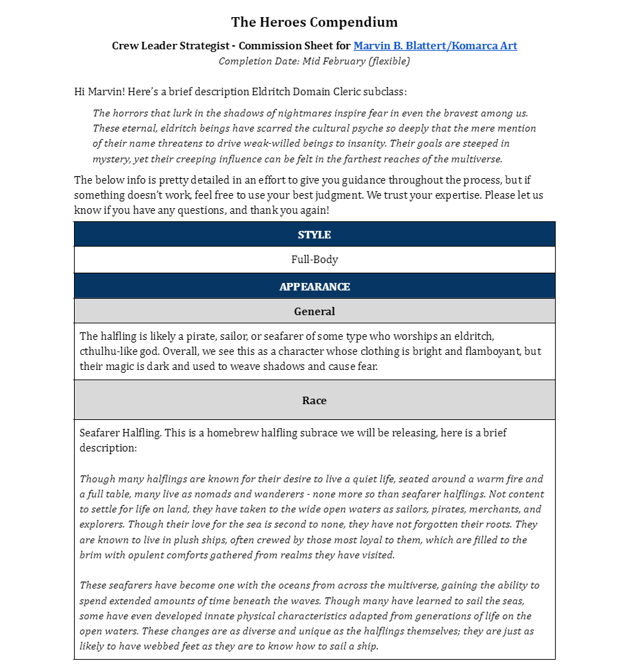 Once you confirm your interest and have a general idea of pricing, we’ll send you a a more detailed commission sheet that looks like this: